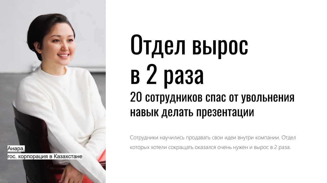 Вы получите пошаговый план выхода на х2-х10 уровень дохода с помощью презентаций. То что можно внедрить за 2-4 недели и получить ощутимый результат